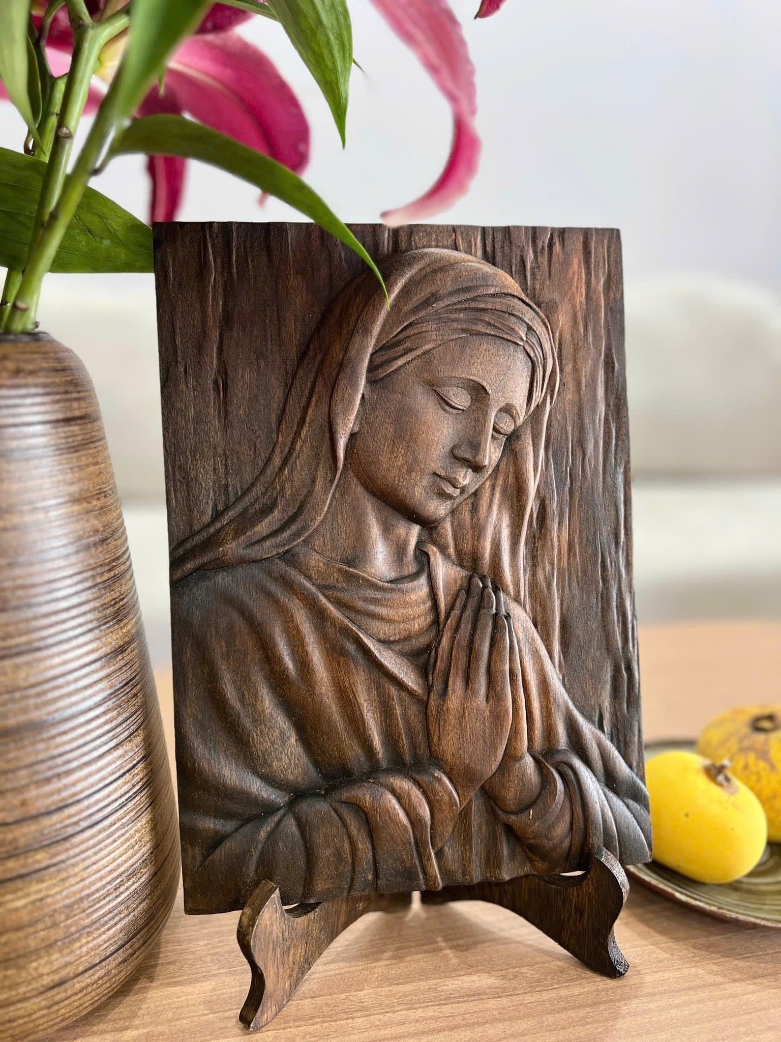 Classic Wooden Nativity Scene Ornament: The Holy Family of Mary, Jesus, and Joseph, Wall Hanging,