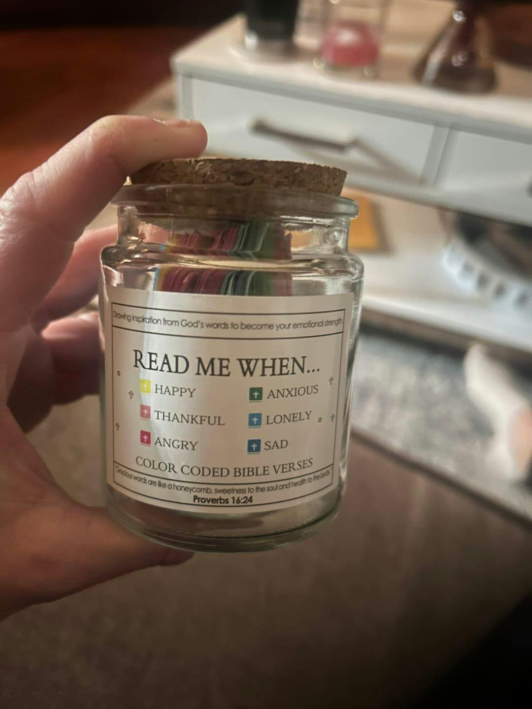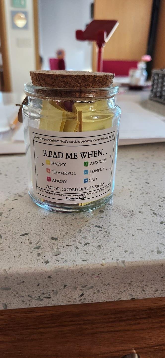 ⭐️⭐️⭐️⭐️⭐️“I was truly surprised when I received this gift. The small Bible verses, carefully folded into tiny notes and placed inside a lovely jar, have brought me so much comfort and peace. This is not just a gift, but a wonderful source of spiritual encouragement.”- Michael Smith.