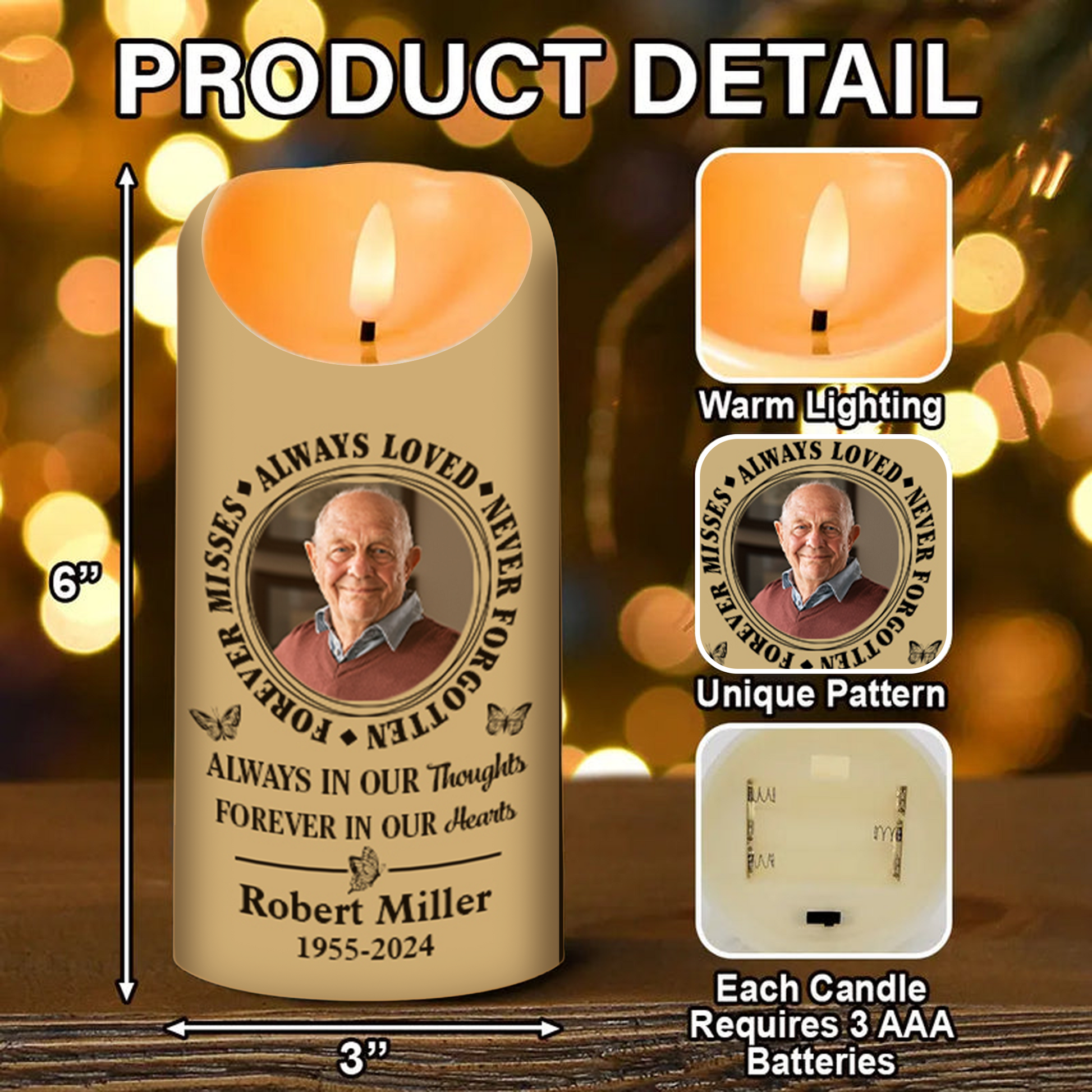 Each candle can be customized with a photo, name, or short message, allowing you to create a unique keepsake that reflects the memory of someone dear.