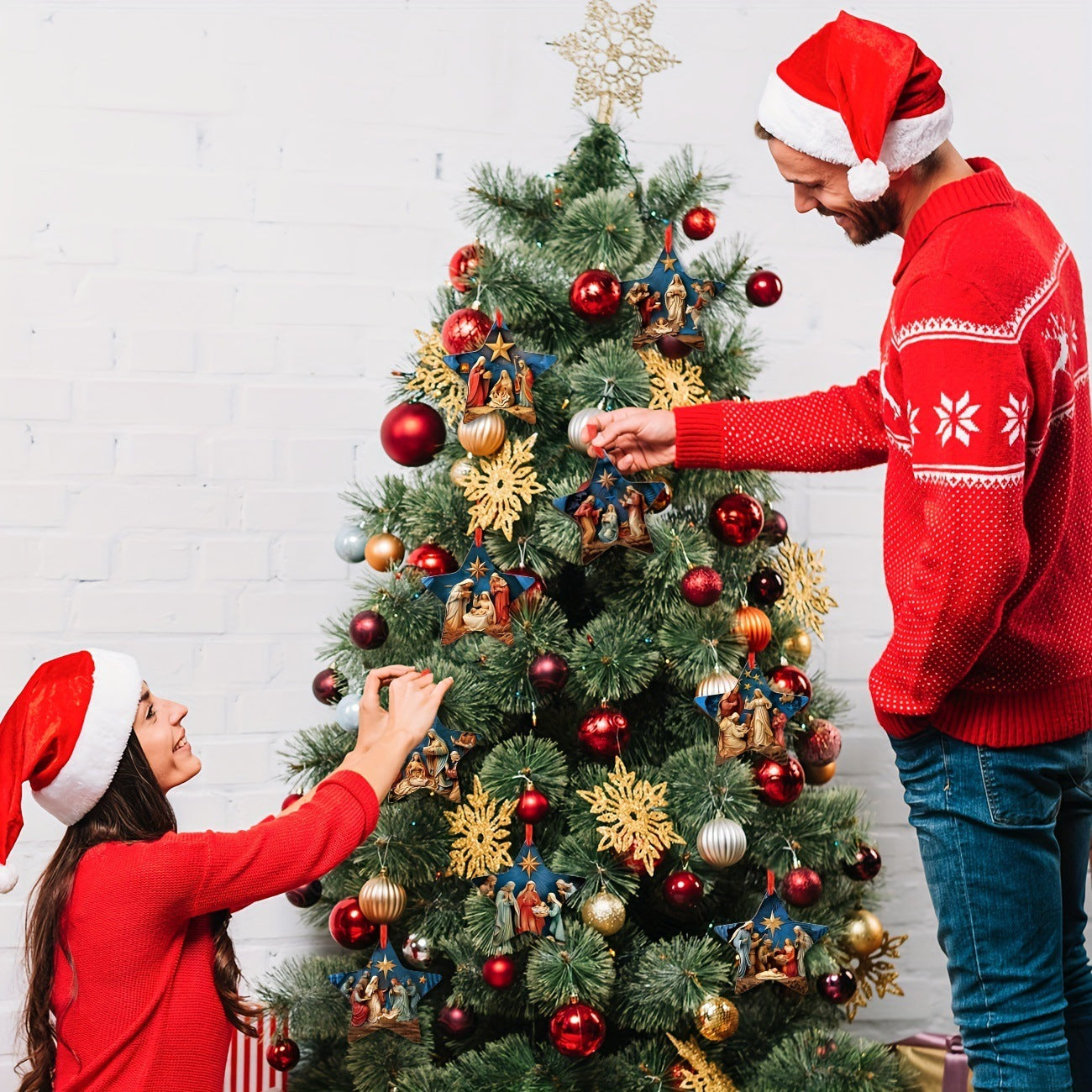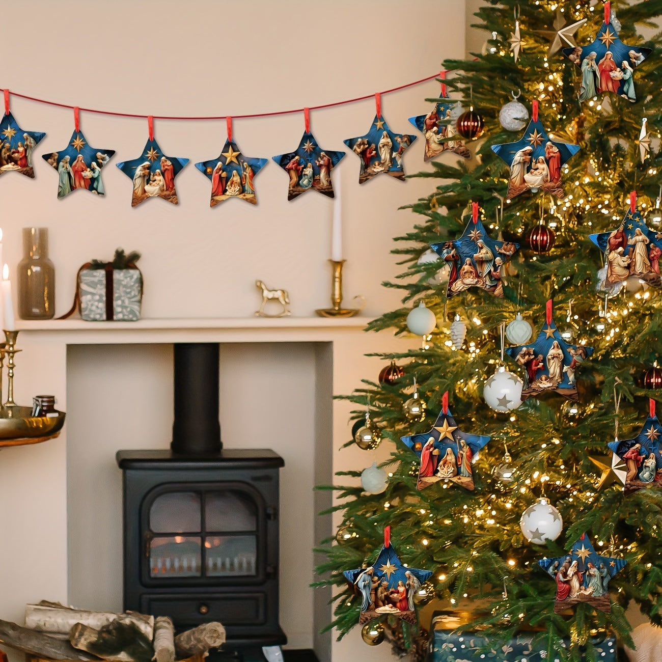 Wooden Jesus Star Christmas Ornaments, Handmade Set